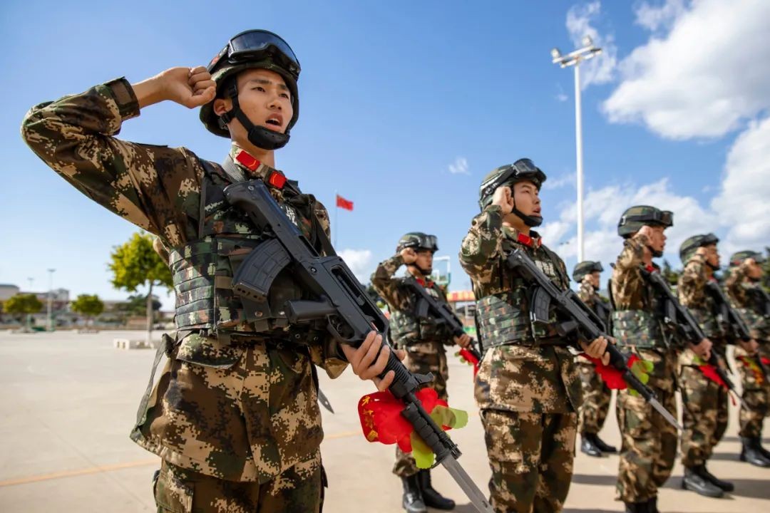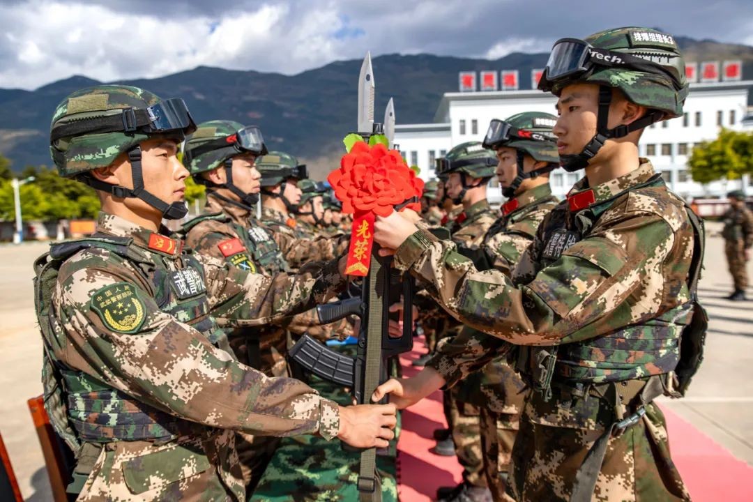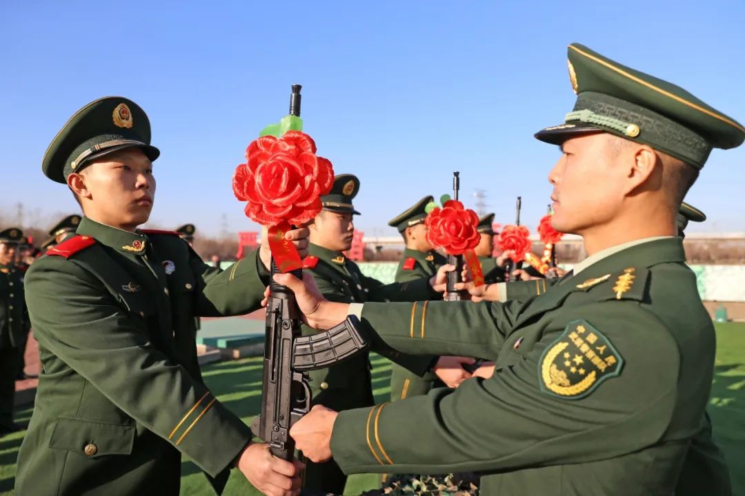 庄严的授装仪式上新战友们整齐列队接过钢枪就是接过使命
