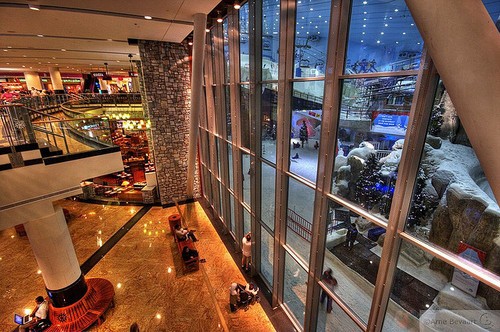 迪拜每家商场都有独特的主题,比如酋长购物中心在商场内建造了一个全球最大的室内滑雪场——也只有迪拜,才能想出在终年炎热的沙漠地带,生造出一个滑雪场。它的面积超过三个足球场,落差85米(约25层楼高),室内常年保持在1到3摄氏度。在这里,看着玩high的阿拉伯年轻人,百般感慨都化作一句:土豪!