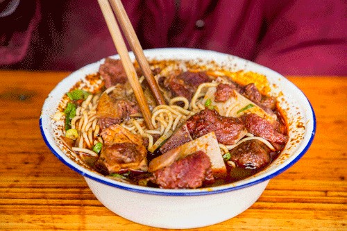 襄阳人有一句顺口溜:“牛肉面,真是香,一天不吃想得慌。”制作地道的襄阳牛肉面的关键是汤汁和牛肉,必须是取材优质的黄牛肉,然后再加上辣椒和大料等十几种香料,经过几个小时的熬炼秘制而成。