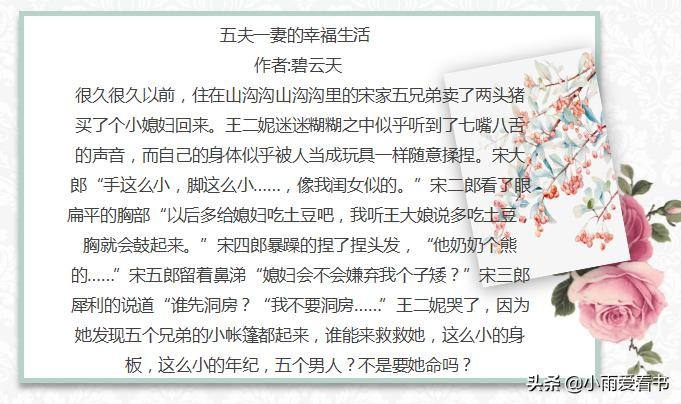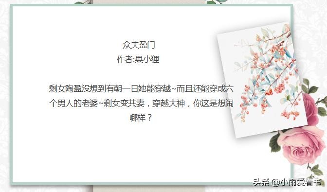 嗨喽!大家好,我是小雨爱看书,长年老书虫,向大家推荐一些精彩小说。大家有什么好文或者想看的文都可以在文章下面留言哦。今天为大家推荐女主穿越共妻文第一期: