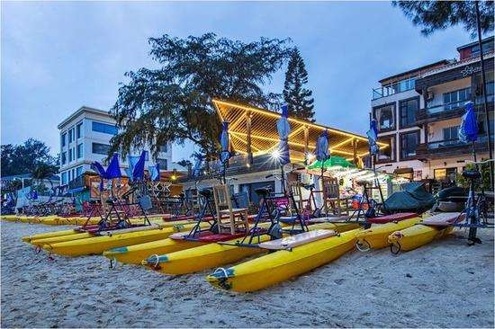 较场尾的海滩没有网上说得那么好,黑黄的沙滩,沙子不够细。不过海上娱乐设施倒是挺齐全的,玩起来挺刺激的。