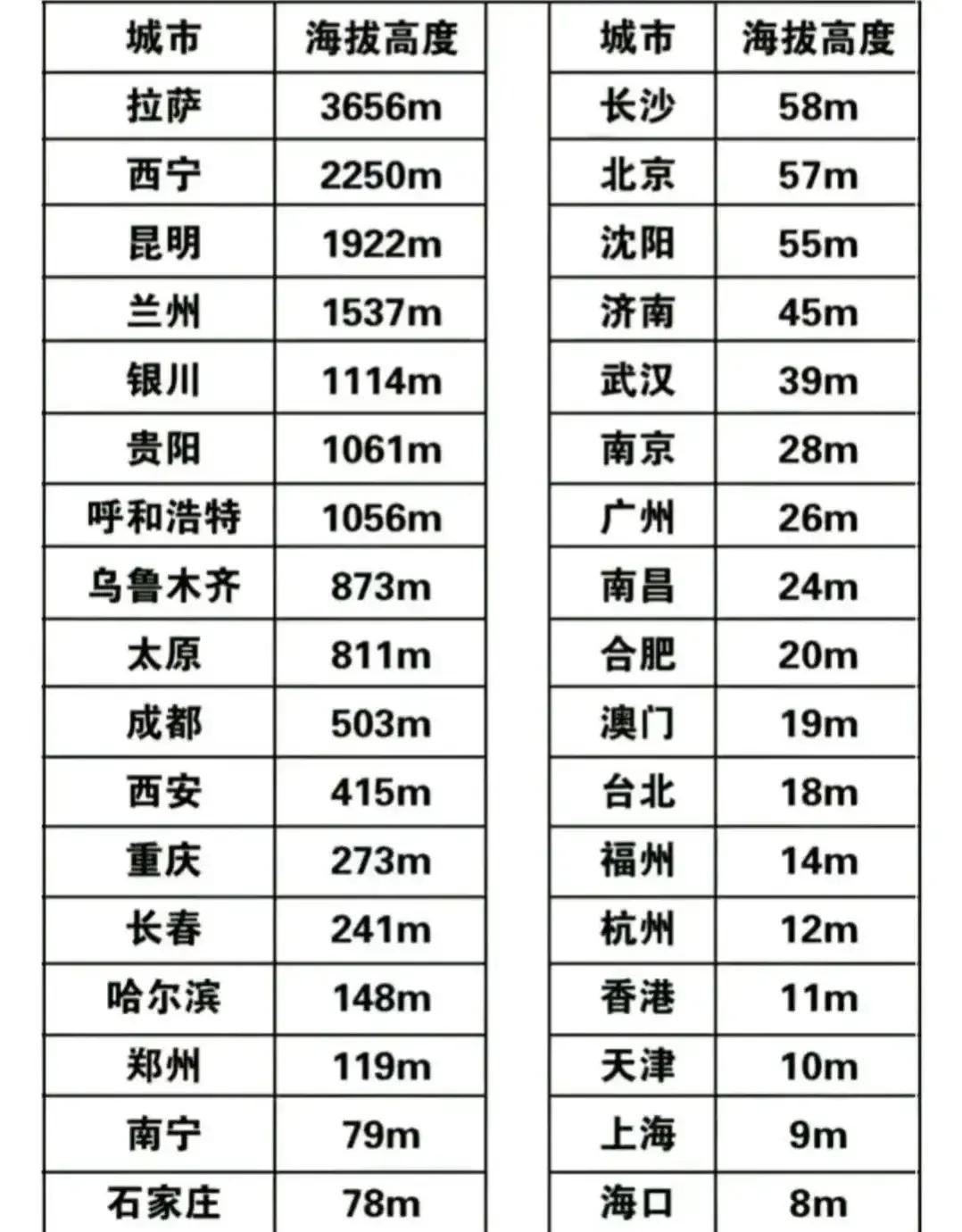 中国城市海拔高度排名:拉萨3656米,北京57米,上海不足10米