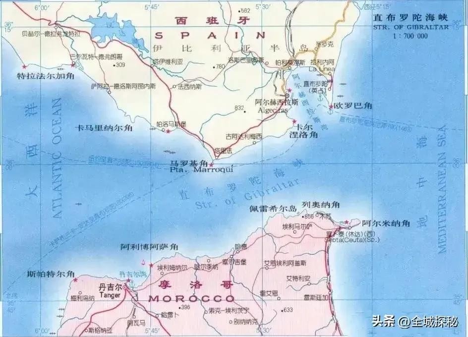 直布罗陀(Gibraltar)是当今欧洲大陆唯一的殖民地,面积只有5.8平方公里,人口3.1万(2012年),主要语言为英语和西班牙语,77%的居民信奉天主教。位于西班牙国土正南端,由几块巨大的岩石组成,面向摩洛哥海岸。在直布罗陀海峡东端的北岸,扼大西洋和地中海交通咽喉,南对西班牙的北非属地休达市,战略地位十分重要。直布罗陀海峡长90公里,宽12公里至43公里,是大西洋和地中海之间唯一的海上通道。直布罗陀是重要的要塞和海空军基地,有现代化装卸设备、船舶修理厂和大船坞,并有钟表制造、酿酒等行业。自最南端的欧罗巴角灯台,天气晴好时能望见对岸的非洲大陆。