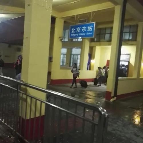 北京东站非常的小,给人的感觉就像是穿越到了八十年代,非常的复古。车站对面还有一个小卖部,上边同样是贴满了小广告,看上去与环境非常的和谐,跟北京其它火车站相比实在是太寒酸了。