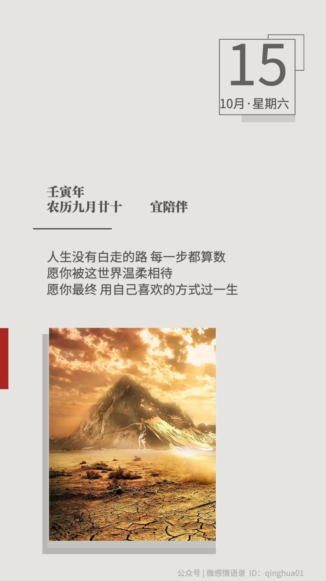 人生没有白走的路 每一步都算数 愿你被这世界温柔相待 愿你最终 用自己喜欢的方式过一生