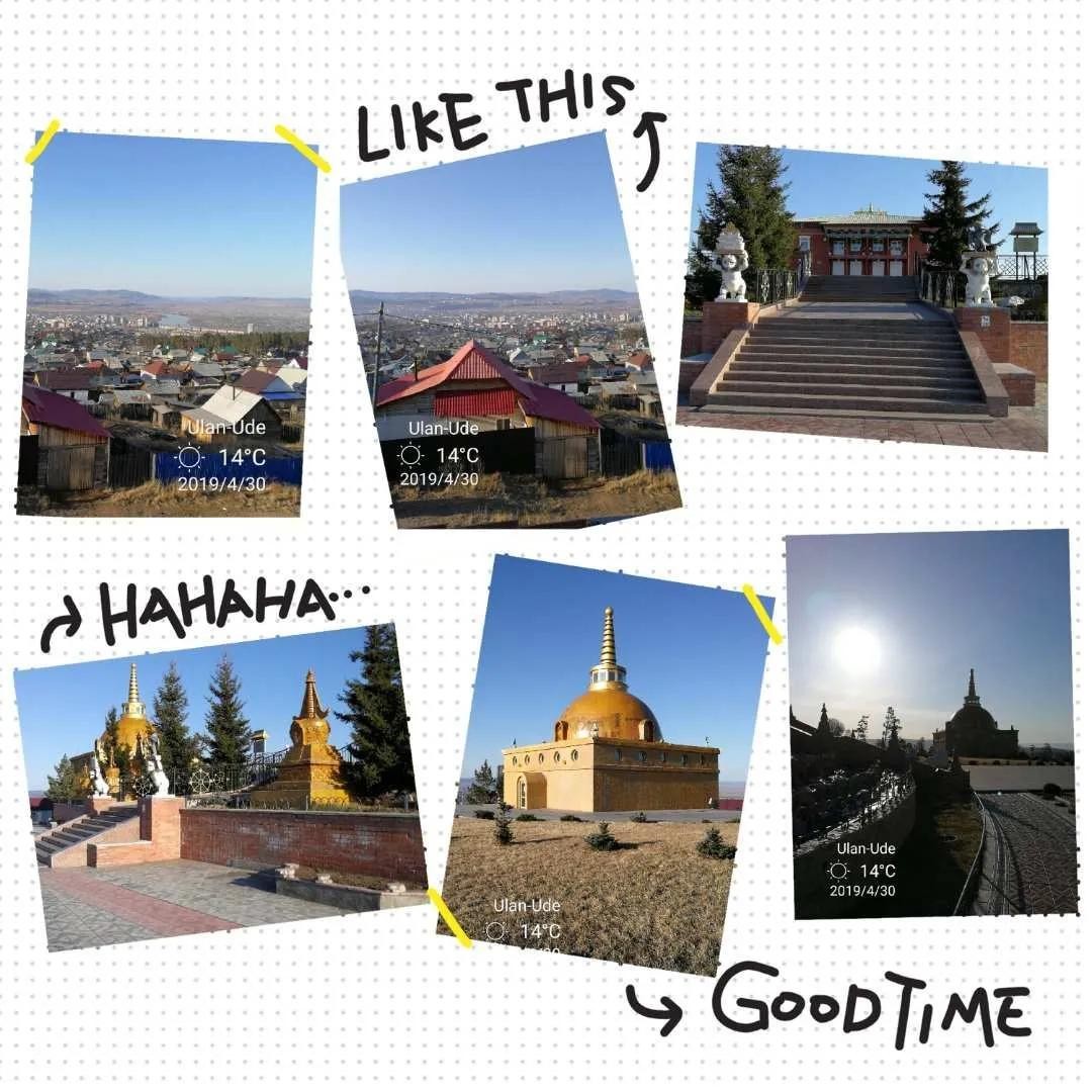 30号停车在乌兰乌德城北伊鲍尔金斯基喇叭庙前。乌兰乌德是布里亚特共和国中心,从城北坐现代牌的小巴到列宁广场,列宁广场中央竖立着世界最大的列宁铜像,穿过列宁广场附近的凯旋门,找到一家俄罗斯餐厅,餐厅挺有俄风,菜品看着挺好吃。站在乌兰乌德最高处的伊鲍尔金斯克藏喇嘛寺庙,俯瞰整个城市。城中好多蒙古人,看上去像亚洲人面孔,误以为是华人。列宁广场在进行阅兵演练,因为5月9号是胜利日。