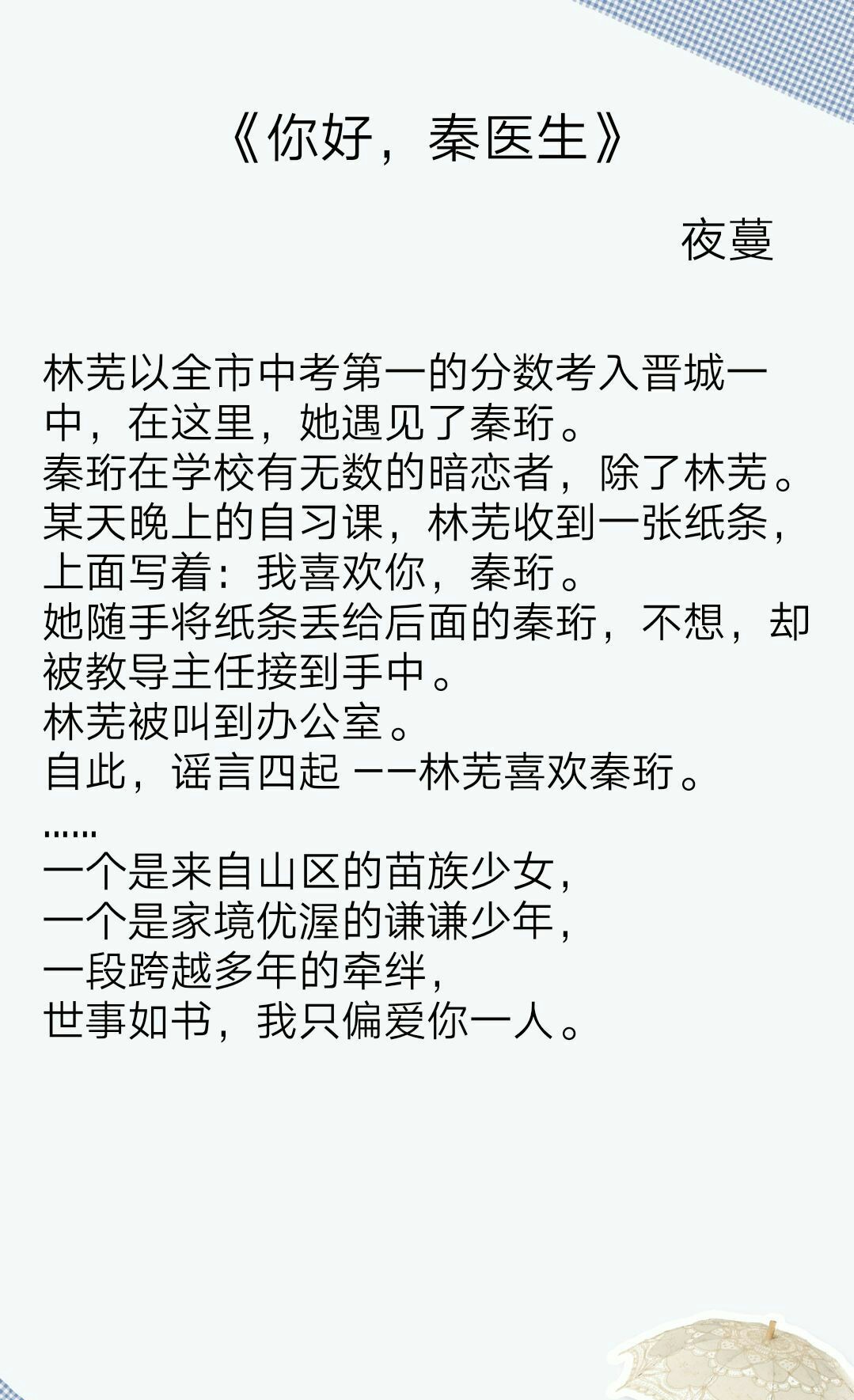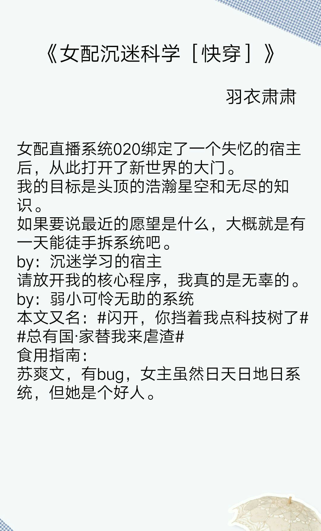 女主是学霸的完结文:《你好,秦医生》《女配沉迷科学》