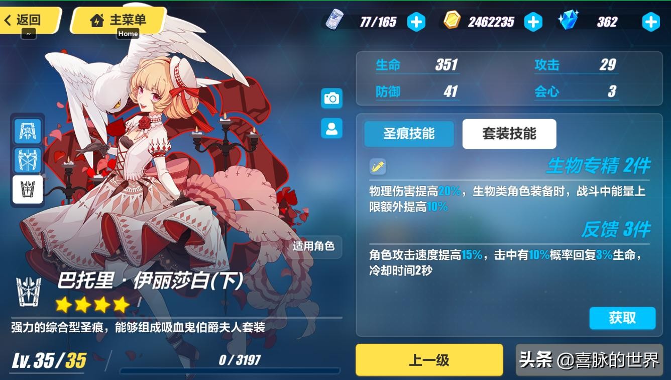 说起来,虽然【巴托里】只是1款四星圣痕,但却比同样属于“吸血鬼”的五星圣痕【德古拉】在形象塑造上要【成功】,在造型和配色方面,【巴托里】偏洛丽塔风格,典型的宫廷套裙很衬托人物气质,更不用说由飘扬丝带点缀的装饰礼帽增添了人物的俏皮和可爱。