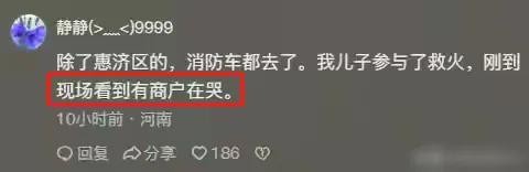 此次火灾,损失最惨重的还是里面的商户,当时围观人员很多,有人看到商户哭的撕心裂肺。