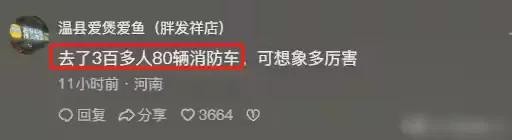 知情人透露,去了300多人,80辆消防车,几乎动员了全市的消防力量。