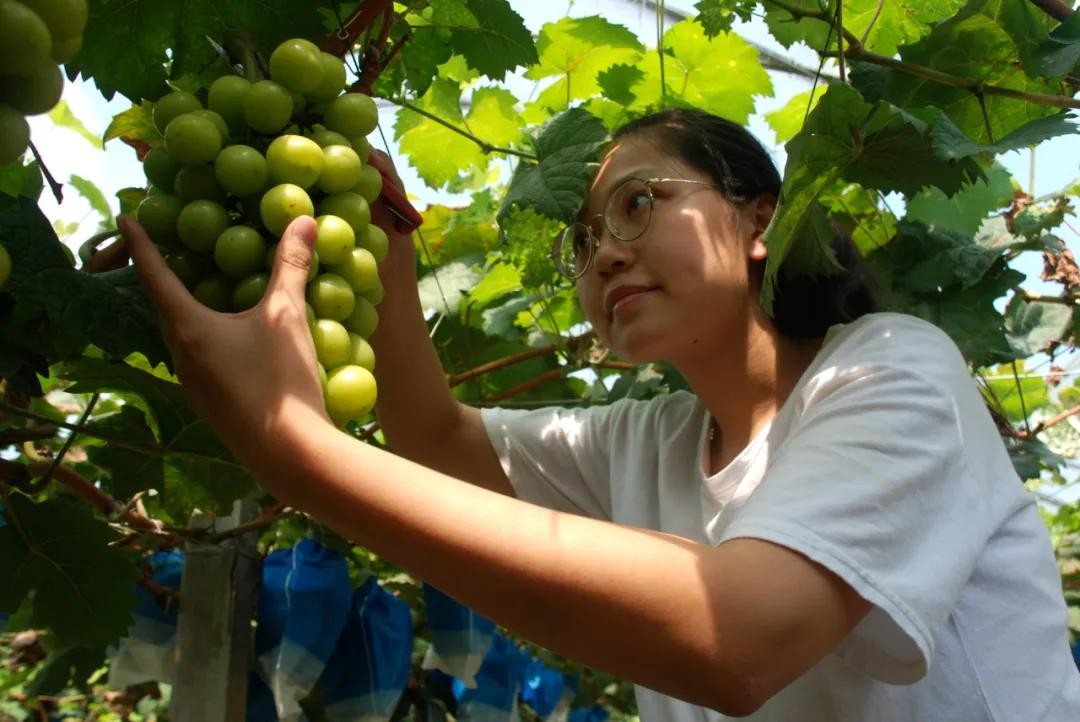 “今年的葡萄长势不错,近两天温差大,葡萄的甜度上来了,香味也就上来了,奶油香味,非常好吃 。”据盛泽园园主马龙介绍说,自2015年他和家人开始种植葡萄,刚开始由于没有经验,前两年没有试种成功,后来专门到南方学习、聘请专家来基地现场指导,慢慢掌握了管理技术。