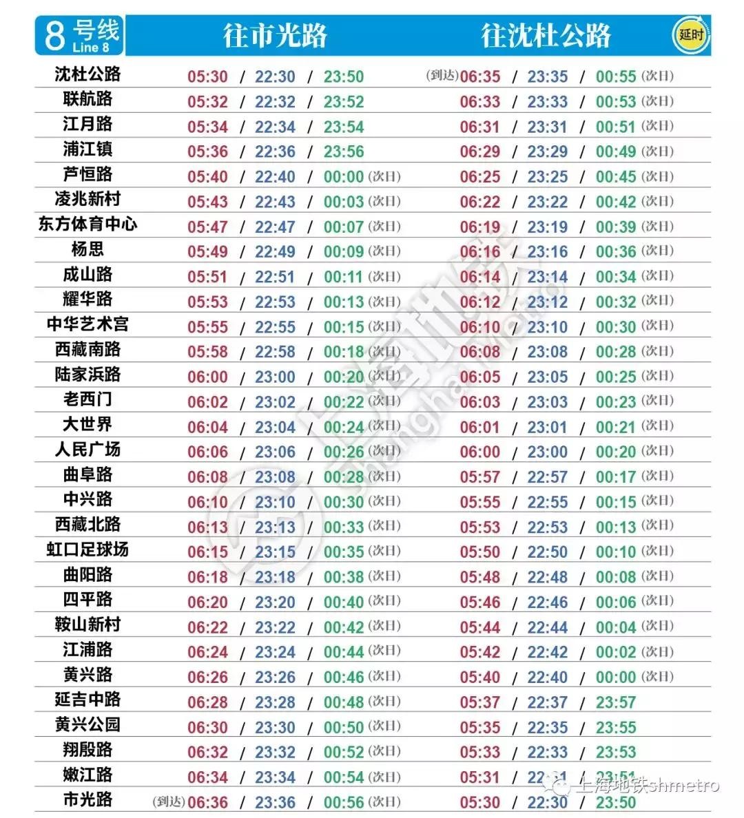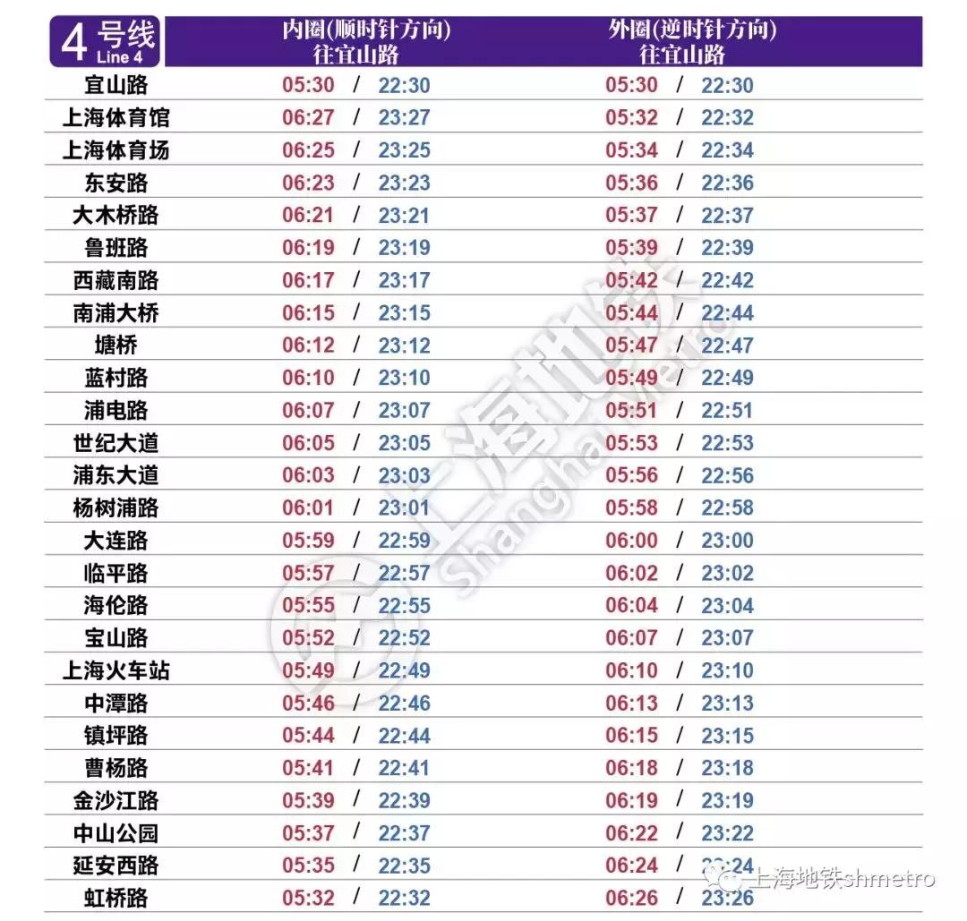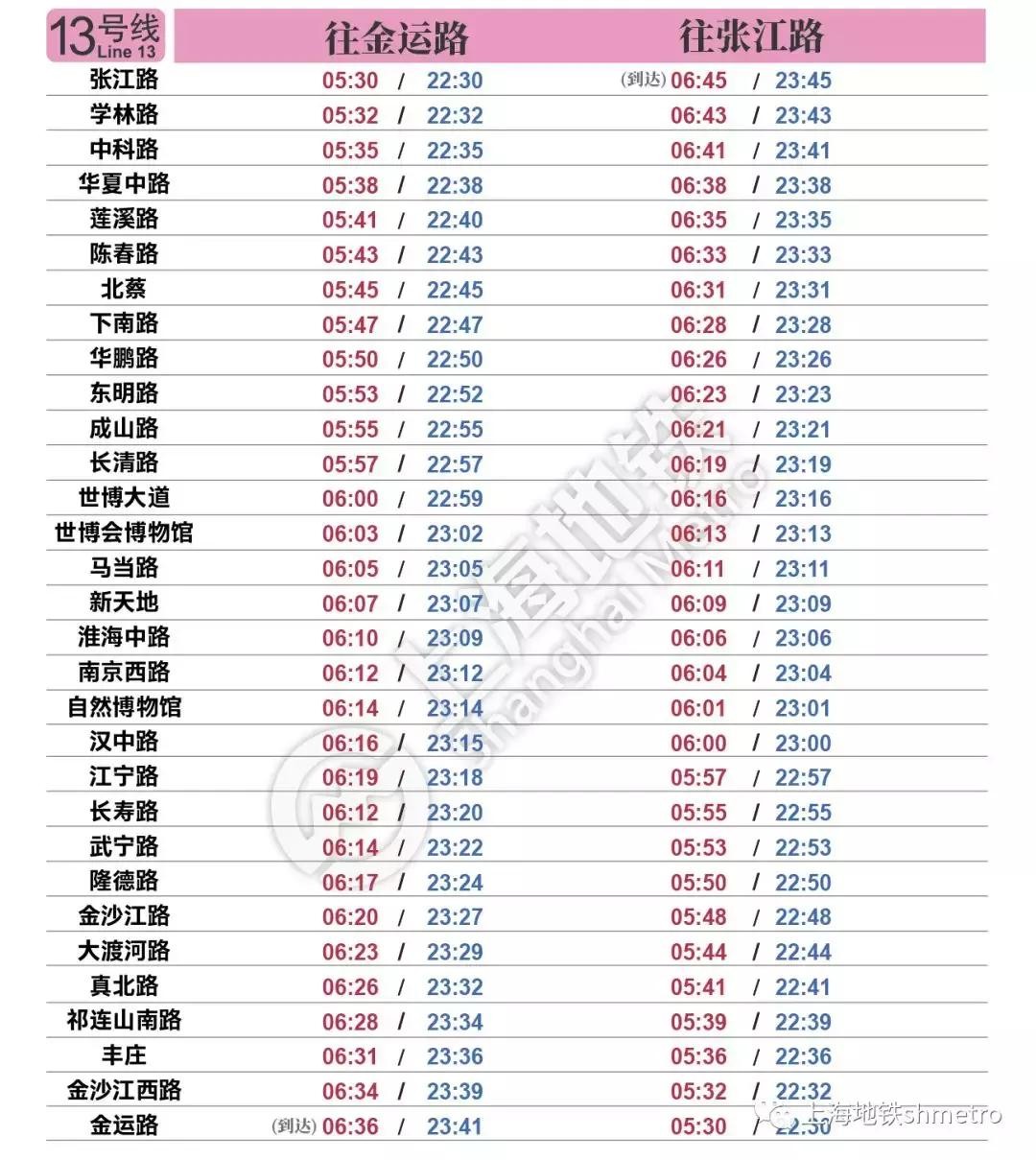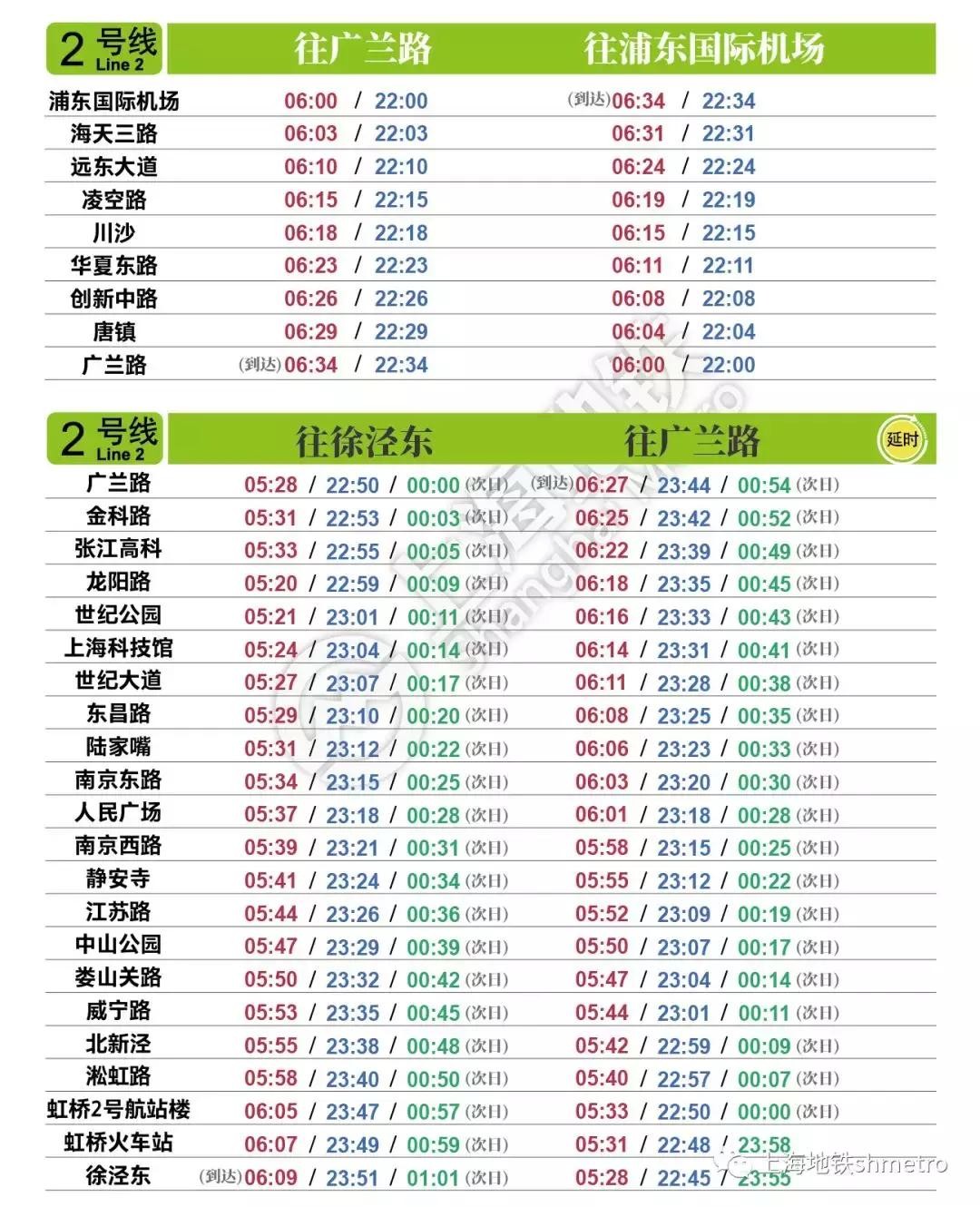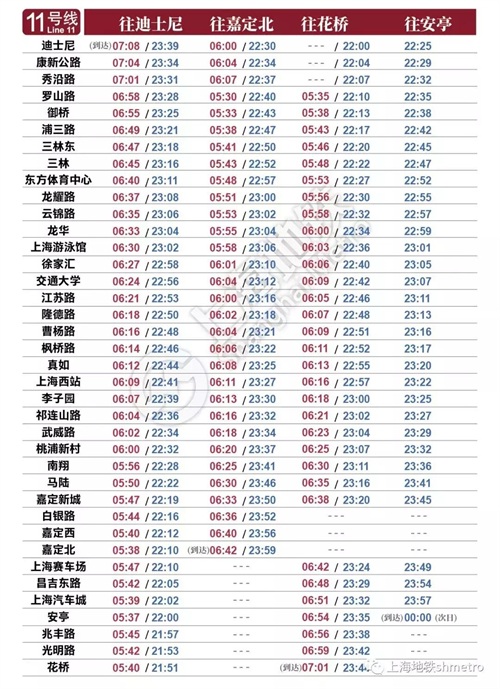 上海目前投入运营的轨交线路已有17条,运营线路总长达到705公里(地铁676公里+磁浮29公里),车站数增至415座(地铁413座+磁浮2座),换乘车站增至57座。那么,各个站点的首末班车时间是什么呢?申通地铁集团公布最新的“首末班车时刻表”,晚上需要换乘的朋友记得Mark!PS:末班车进站前三分钟停售该末班车车票哦。