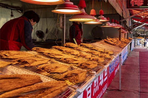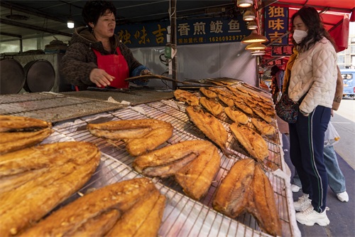 2025年3月14日,来到俗称辽南温泉第一村的营口市盖州市双台镇思拉堡温泉小镇,享域泡温泉带来的快乐。来这里洗温泉的人们大多数都是自己买菜做饭吃,他们纷纷来到小镇上的泉城综合市场。这市场除与其他市场经营的蔬菜、水果、海鲜、米面油外,还有特色的煎大鲅鱼、杠头烤馒头等,深受外地游人的喜欢。