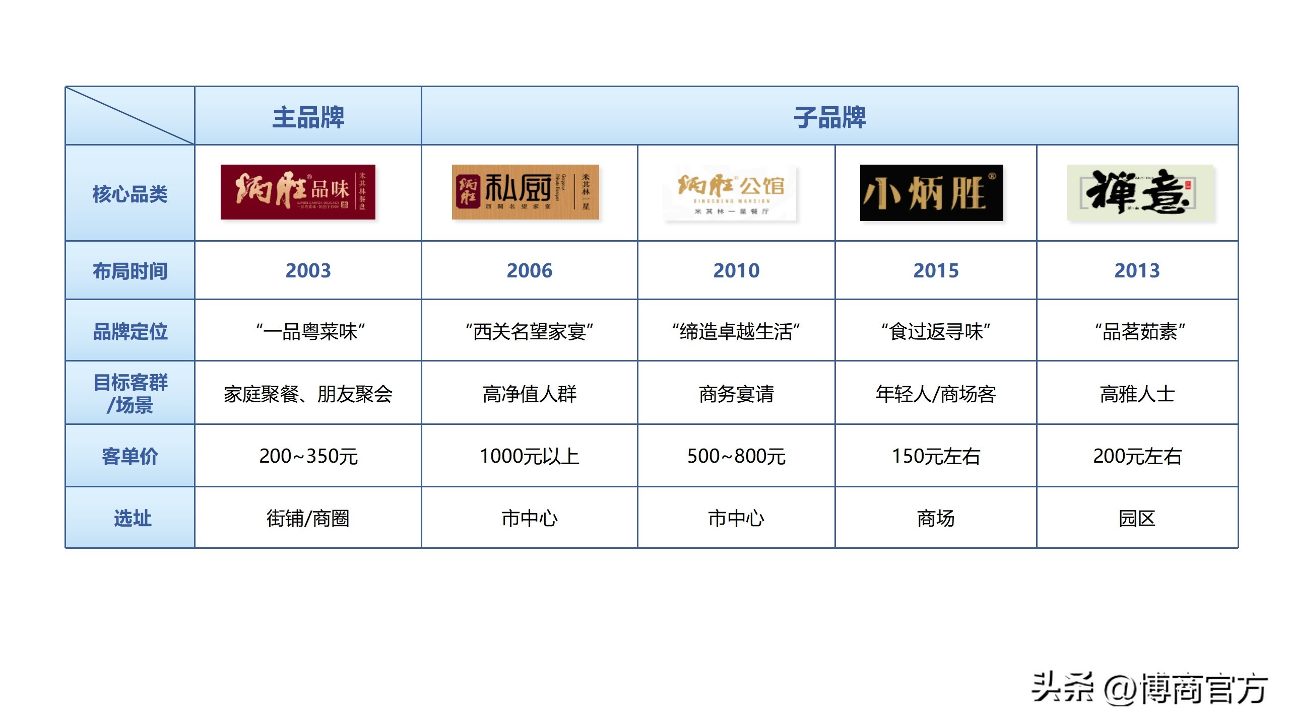 · 主品牌“炳胜品味”则定位为正宗广府家宴,适合家庭聚餐、朋友聚会,客单价在250元左右;