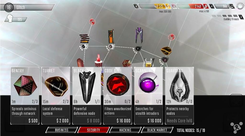 《黑客》是一款玩法策略性比较强的游戏,玩家在游戏扮演者一名网络上的黑客,通过攻陷某个国家或者地区的网络设备来发展自己。每个人都可以毫无限制的发展自己的网络势力来进攻他人或者进行防守。玩家要做的事情就是建立自己的 3D 网络,从而保护好自己的核心不会在进攻或者防守时被地方损毁,而守卫核心的“士兵”都是一些在我们的生活中能够见到的电子设备。其实上游戏的玩法与当下比较红火的《部落冲突:皇室战争》如出一辙,玩家要先调配好自己的阵形,保证所有的线路畅通,接着只要在战斗中不断的操控自己的战斗或者防御单位与敌方抗争即可。