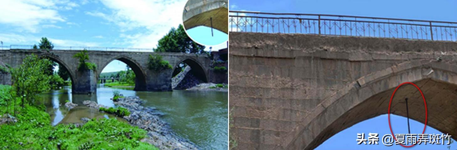 “彭公桥”(即靖安大桥),右图中桥拱下垂之物即为彭勤亲手在桥下悬挂宝剑