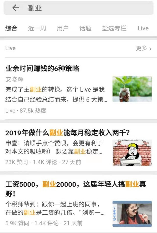在知乎上搜索“副业”两字,清一色的出现了各种怎么用副业的提问,这种提问还算是低级的;心态高的朋友们直接提问:怎么靠副业月收过万?关于用副业挣钱的回答也是五花八门,点赞量最高的回答之一是准备三百万存在银行里,平均每月利息大概一万左右。问题是上哪里挣这三百多万,如果主业挣的够花,谁还在996的繁重之后再去搞副业?毕竟刚刚发生在高以翔身上的不幸我们都是有目共睹的!