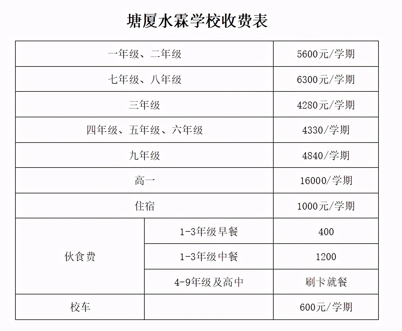 塘厦水霖学校从开办初的不到千元的学费,发展到今天十多载,随着学校越办越大,成绩、口碑都得到社会上家长们的认可,学费也是逐年长提高,但是相对其他高收费的学校还是便宜的。