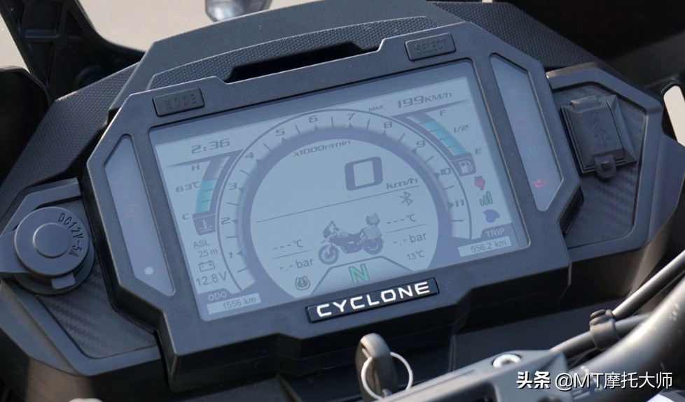 实用性上,这款车的仪表两侧也是配备了USB手机充电接口和12V点烟器。而在手把右侧,还装配了一个可关闭abs的按钮,长按三秒即可关闭,大大提升了这款车的可操控性。
