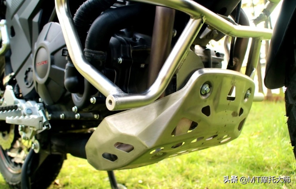 对于这款发动机也是进行了重新测试,表显最高极速可以达到149km,和GPS测速相差不大。另外还可以看到这款发动机的底板有着钢板护板,在野外骑行不用担心会损伤到发动机,性能比较不错。