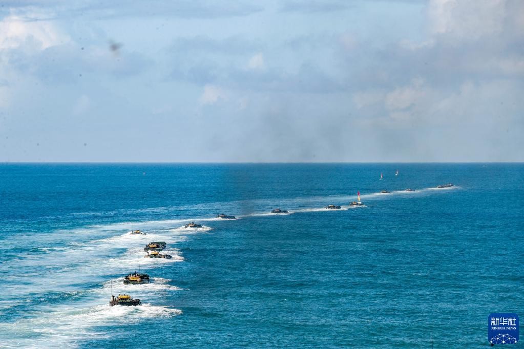 “硬骨头六连”官兵驾驶两栖步战车在海上进行实战化训练