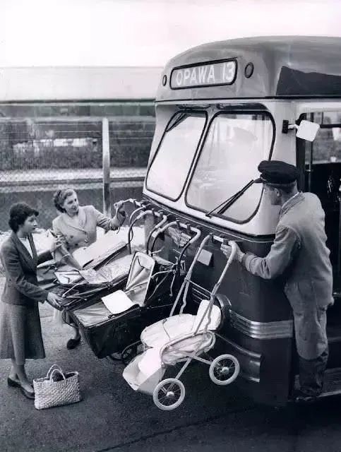 七、1955年代公交车可以托运婴儿车,非常的不错。