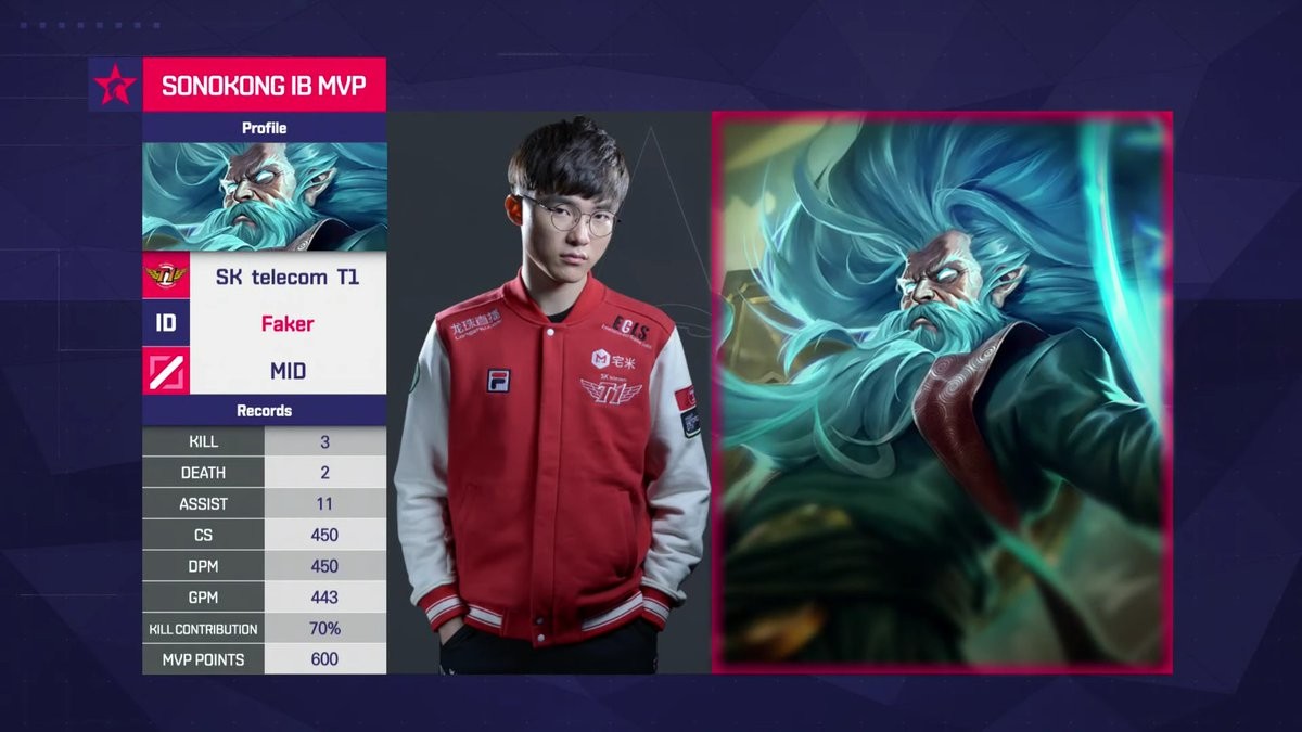 SKT和KT的比赛最终人头比相差非常悬殊,虽然双方在中期一直都是55开的经济,没有拉开太多。但由于Faker基兰这个大招后期CD时间极短,因此保护下了很多次队友和自己的性命,让KT的狮子狗+泰隆双突进,杰斯+炸弹人高爆发阵容没有能够打出优势。