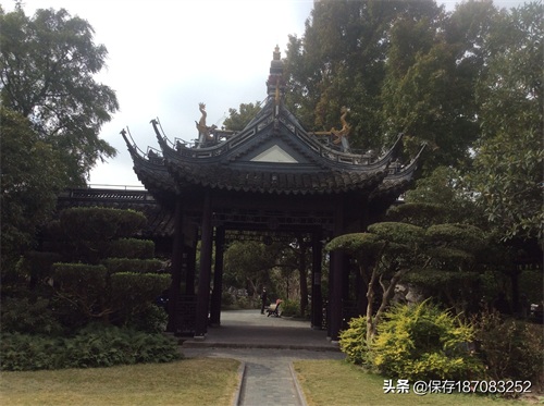 还有九曲长廊,由三个亭子相接,亭顶塑龙头称谓“多角龙头亭”。