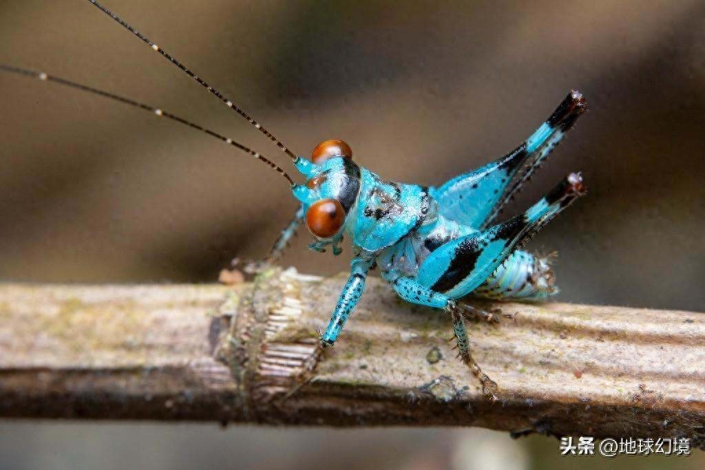 01、一只来自泰国雨林中的小精灵,蓝色螽斯,它就像是一枚蒂凡尼宝石。