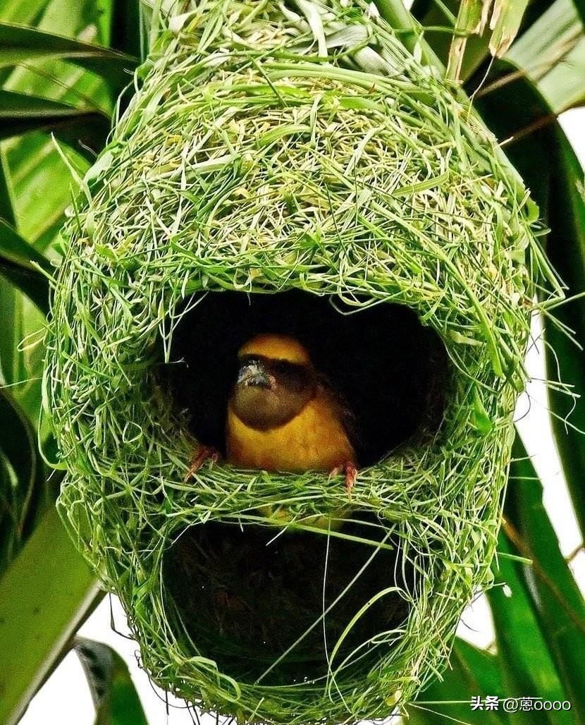 41、织布鸟的鸟巢,来看一下这些心灵手巧的能工巧匠,小小的鸟窝真是温馨又舒适。