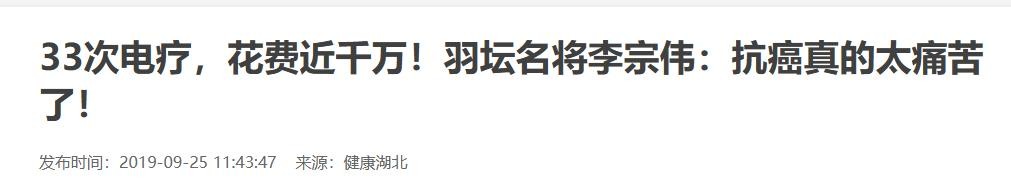 健康湖北:33次电疗,花费近千万!羽坛名将李宗伟:抗癌真的太痛苦了!--2019-09-25
