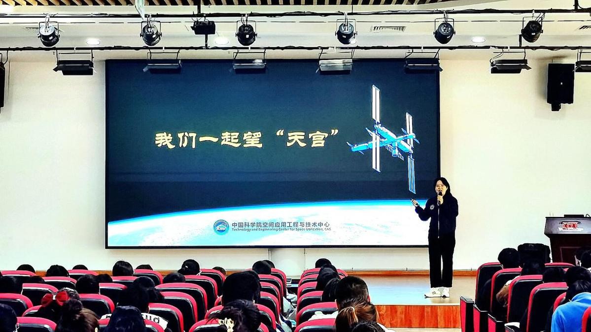 (中国科学院空间应用工程与技术中心副研究员张智慧专题报告《我们一起望“天宫”》 朱歆柯穆 摄)