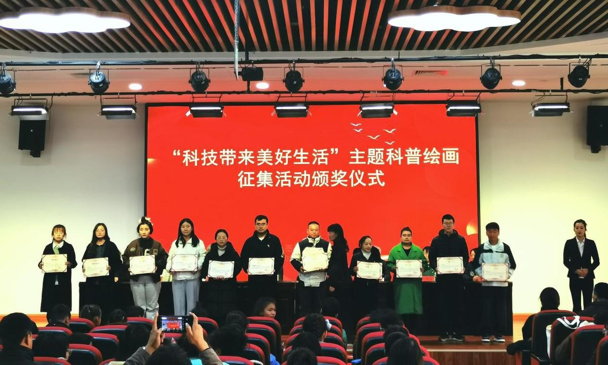 (“科技带来美好生活”主题科普绘画征集活动为获奖的学生们颁奖 朱歆柯穆 摄)