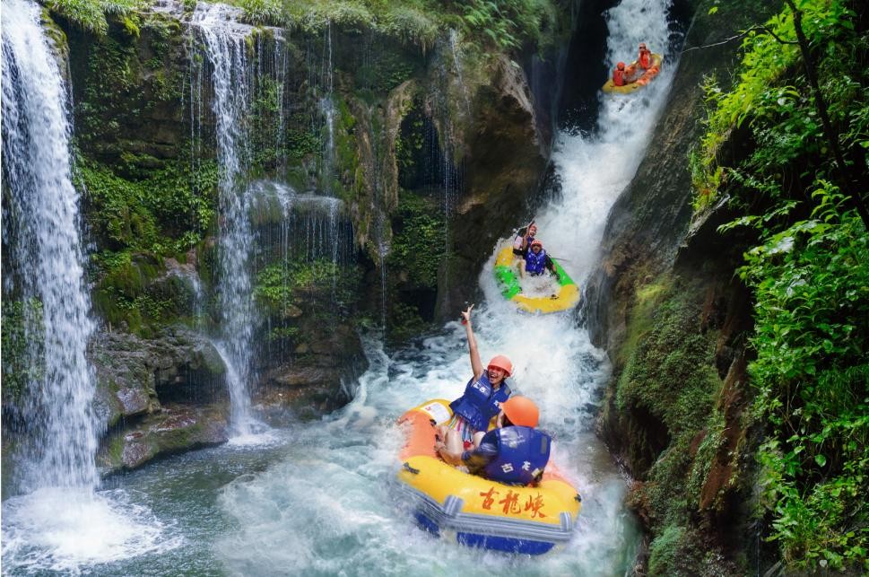 古龙峡漂流赛道落差大、弯道多,好玩刺激的同时船只也容易碰撞翻侧。景区供图