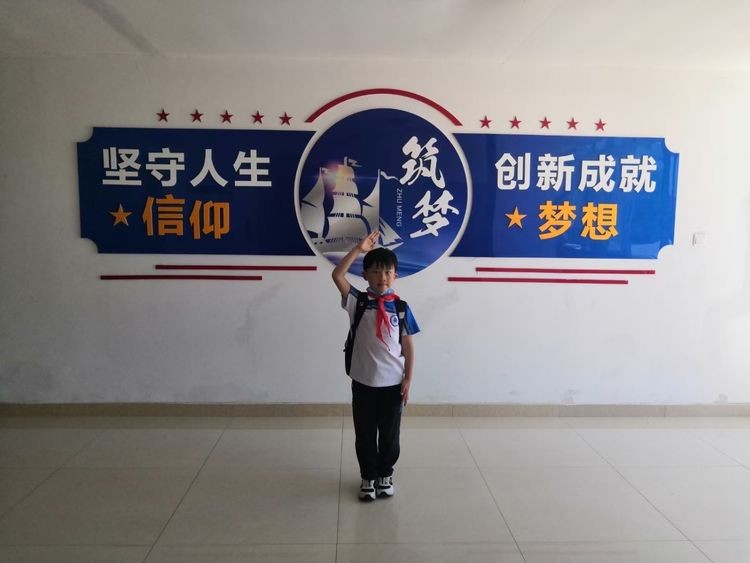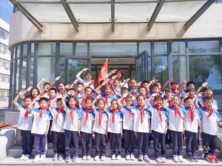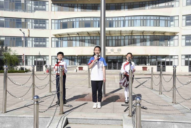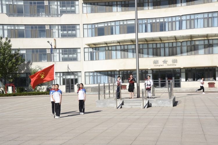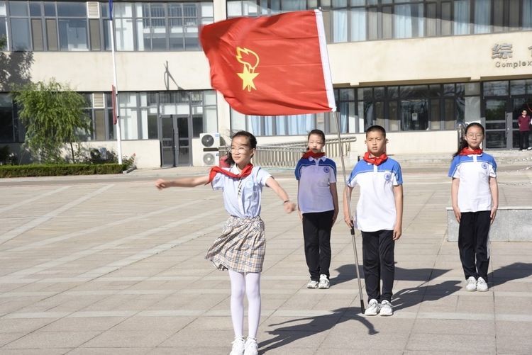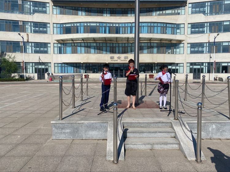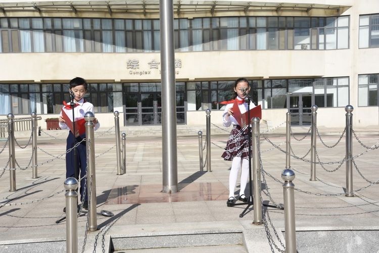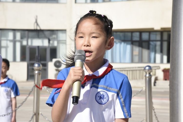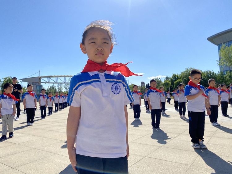 伴随着晨光和微风,在少先队员王常赫和于雯涵的主持下,期盼已久的少先队入队仪式开始啦!