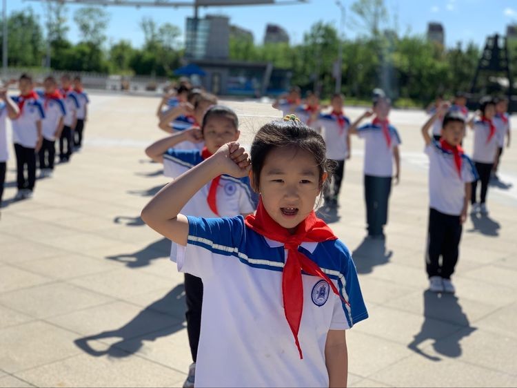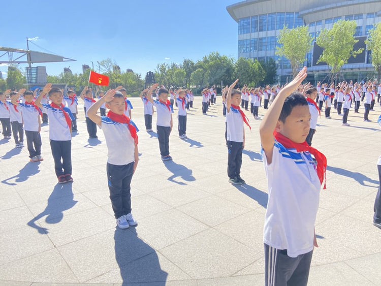 最后,大队辅导员刘丛丛带领少先队员们呼号:“准备着,为共产主义事业而奋斗!”