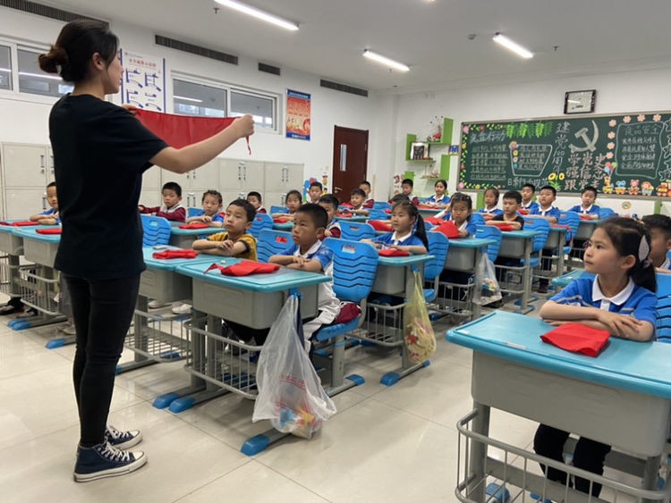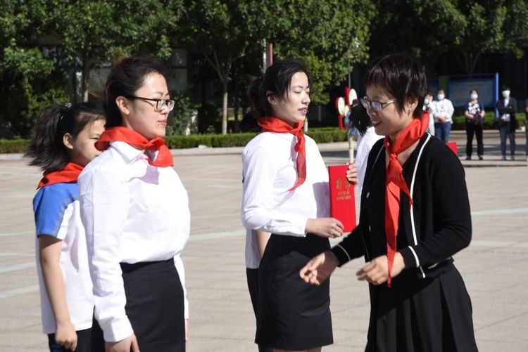 其次,学校少先大队辅导员刘丛丛为新中队辅导员授中队旗;同时,袁延香校长、王敏校长代表潍坊滨海国际学校少先大队为新中队辅导员发聘书。