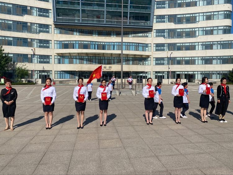 新聘任的中队辅导员向着队旗庄严宣誓:我决心遵照党的教导,在共青团的领导下,牢牢把握少先队组织属性,尊重少年儿童主体地位,竭诚为少年儿童健康成长服务,切实为党做好少年儿童工作,为实现中华民族伟大复兴,培养可靠接班人贡献出一切力量。