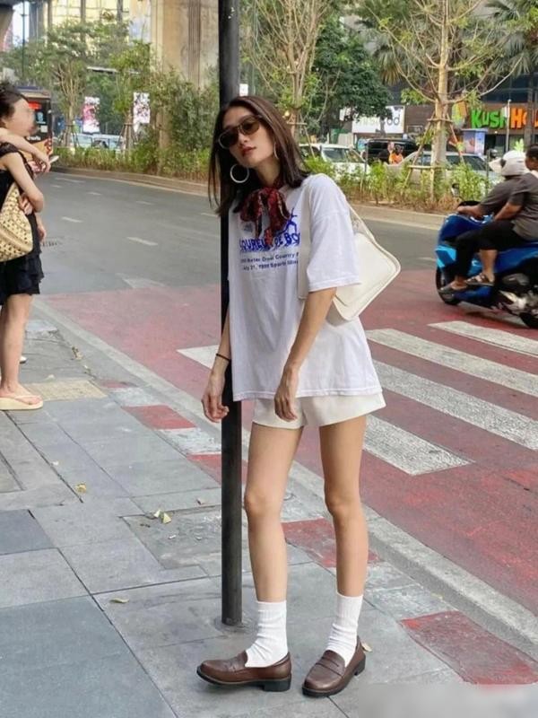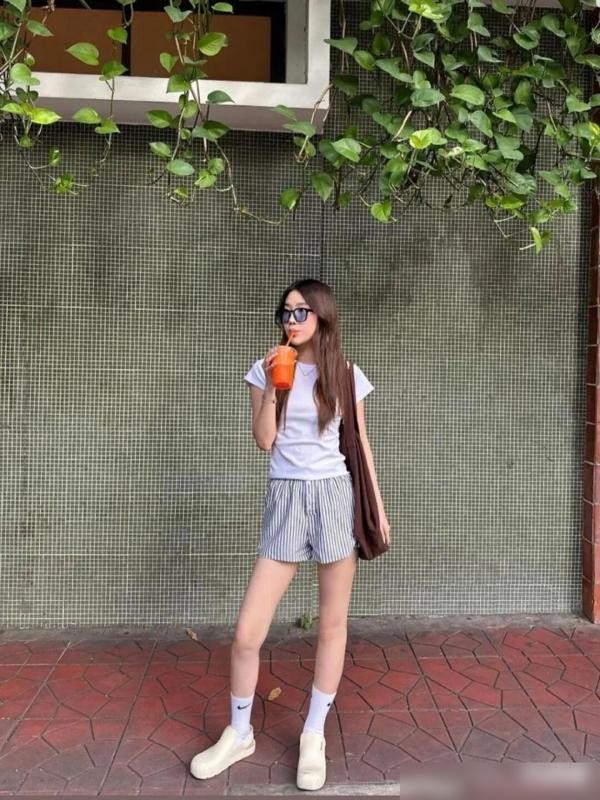 而且这种组合也不会产生太大的违和感,无论你是在家还是在学校,白T恤和短裤的组合也都能让你在5分钟之内出门~