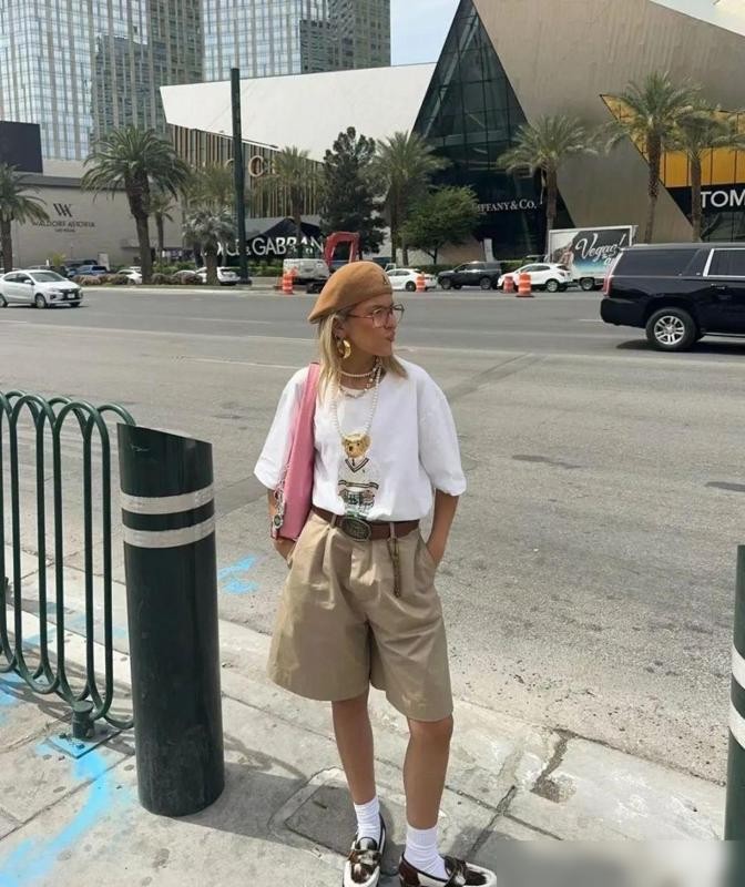 白T恤+短裤,休闲又时髦,5分钟就能简单出门!