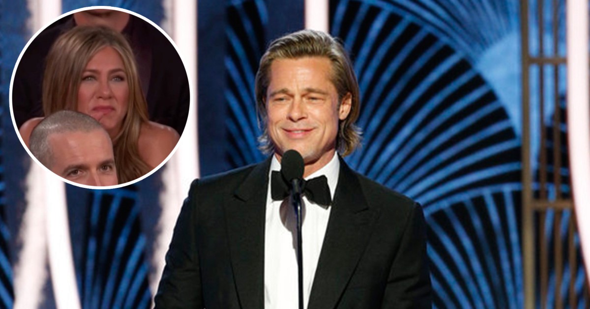 金球奖皮特获电影最佳男配奖,跟安妮斯顿同框,还与前女友相遇