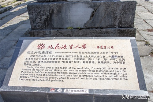 走进西递古村落,首先映入眼帘的是一座高大的牌楼——胡文光刺史牌楼。这座牌楼是明朝万历六年(1578年)朝廷为表彰胡文光为官二十三年的政绩而修建的。牌楼高12.3米,宽9.96米,三间四柱五楼,通体用质地细腻的“黟县青”砌成,雕琢精绝,巍峨高耸,是中国石筑牌坊之瑰宝。
