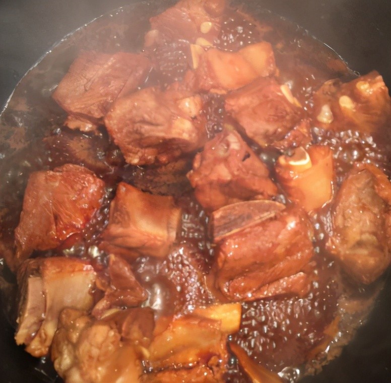 步骤三:将酱油,香醋,白糖,淀粉,水和盐进行搅拌,倒入锅中,一起煸炒均匀后,再加入适量的水(水需要淹没排骨)。
