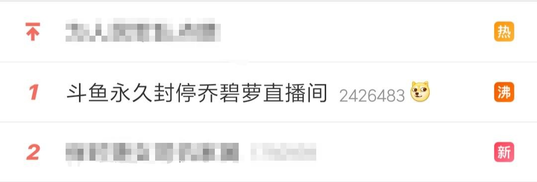 即日起永久封停主播“乔碧萝殿下”直播间,下架所有相关视频,并关闭主播个人鱼吧。