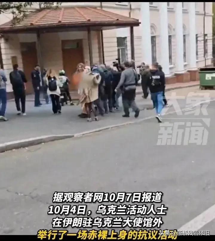 赤裸裸的威胁!乌克兰美女大使馆门前赤裸上身抗议,评论区群嘲