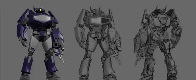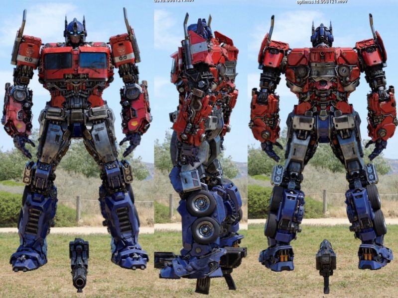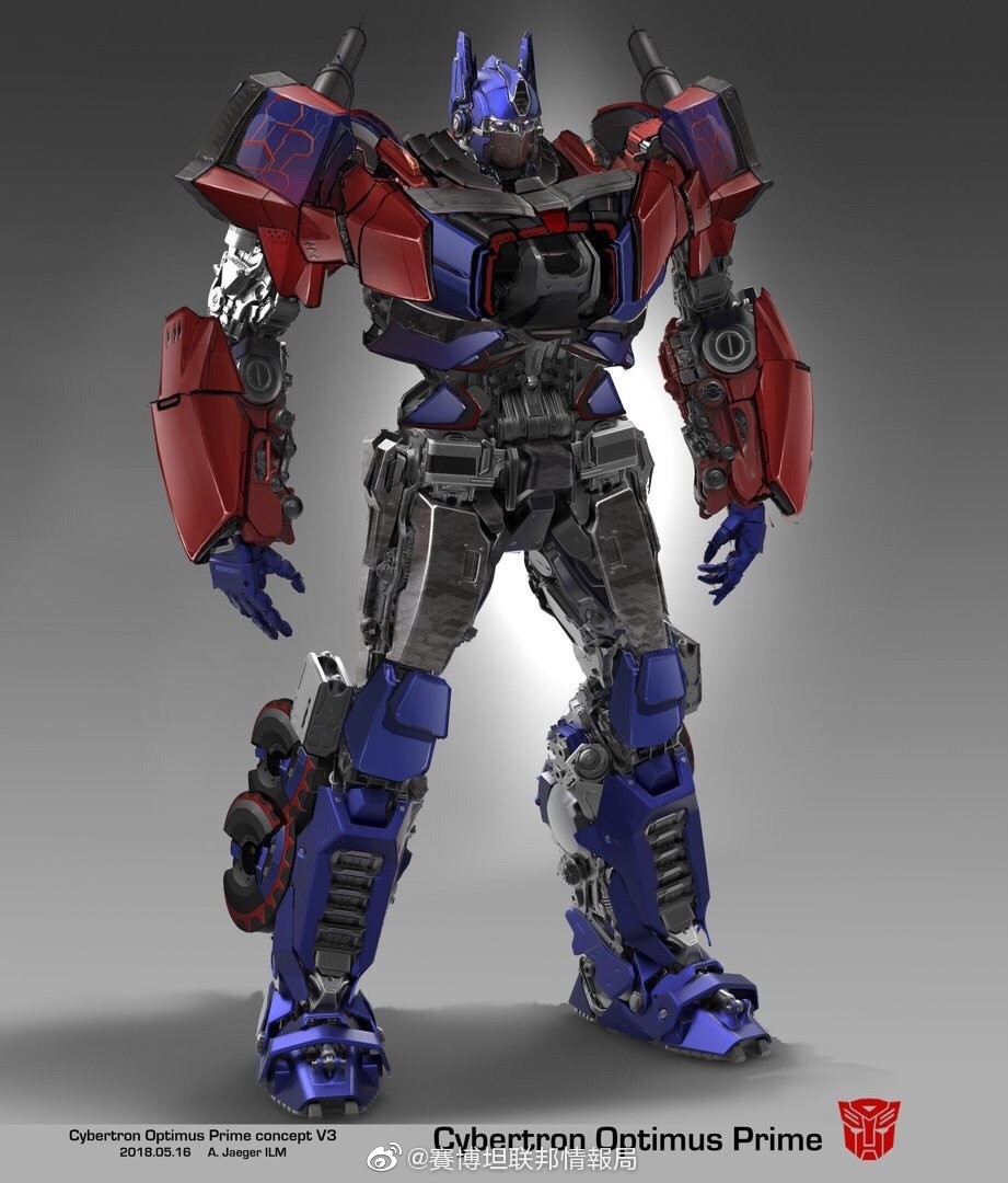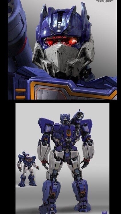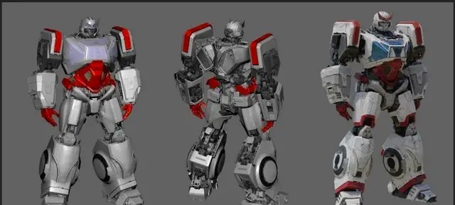 从电影早期设定图看擎天柱人形蓝色部分较多,车型则类似游戏塞伯坦之战中擎天柱的载具形态加上了车厢,到了最终的设定才成为电影中的形象。