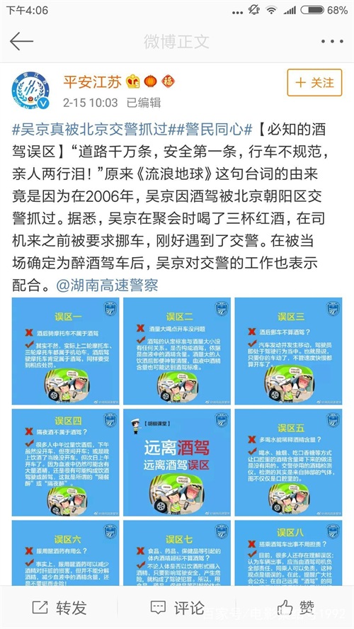《流浪地球》里的这句台词竟然是因为吴京2006年因酒驾被北京朝阳区交警抓过,吴京在聚会上喝了三杯酒,在挪车时碰到了交警,当场被抓。