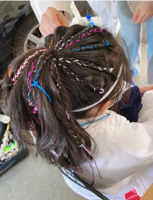 第一张照片中,扎着彩色脏辫的王诗龄背对着镜头,乖乖坐在小板凳上,任由工作人员为她整理新发型,看到这满屏的麻花辫,不得不感慨一句,小小年纪的王诗龄实在是发量惊人。
