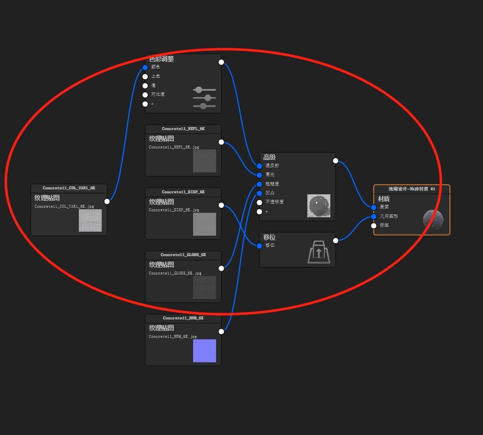 (此图的色彩贴图通过了一个色彩调整节点调色后然后连接到漫反射)