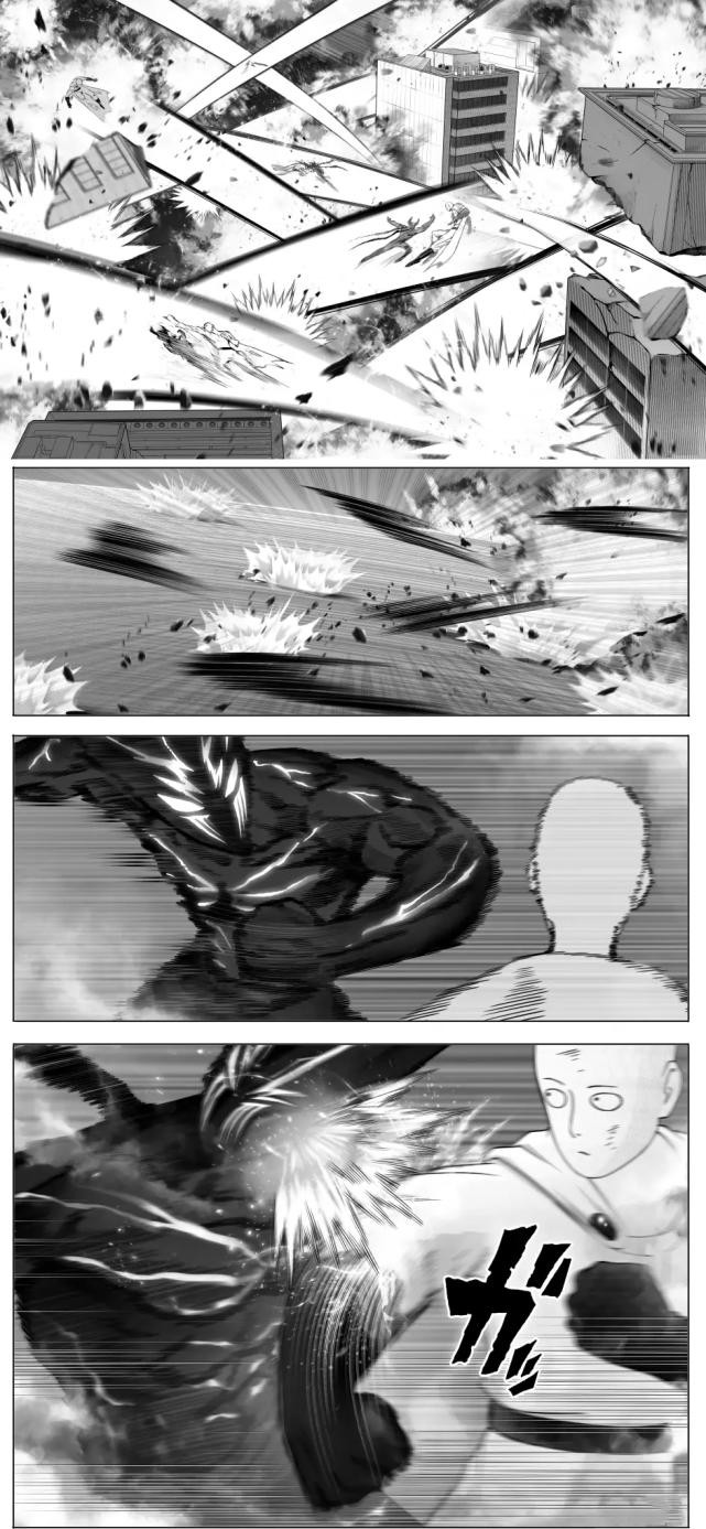 饿狼的攻击很猛烈,把埼玉打得都有点扁了,他以为自己打败了埼玉,但很快埼玉又站了起来,并且毫发无伤,不过埼玉来了点兴趣,因为饿狼够强,而饿狼则十分惊讶,自己那么强的攻击,对方居然一点事都没有?